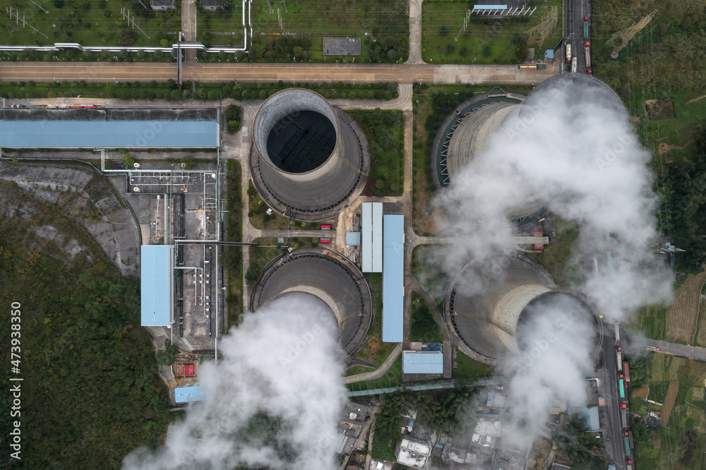 Aerial photography of an alumina plant built on a karst landscape