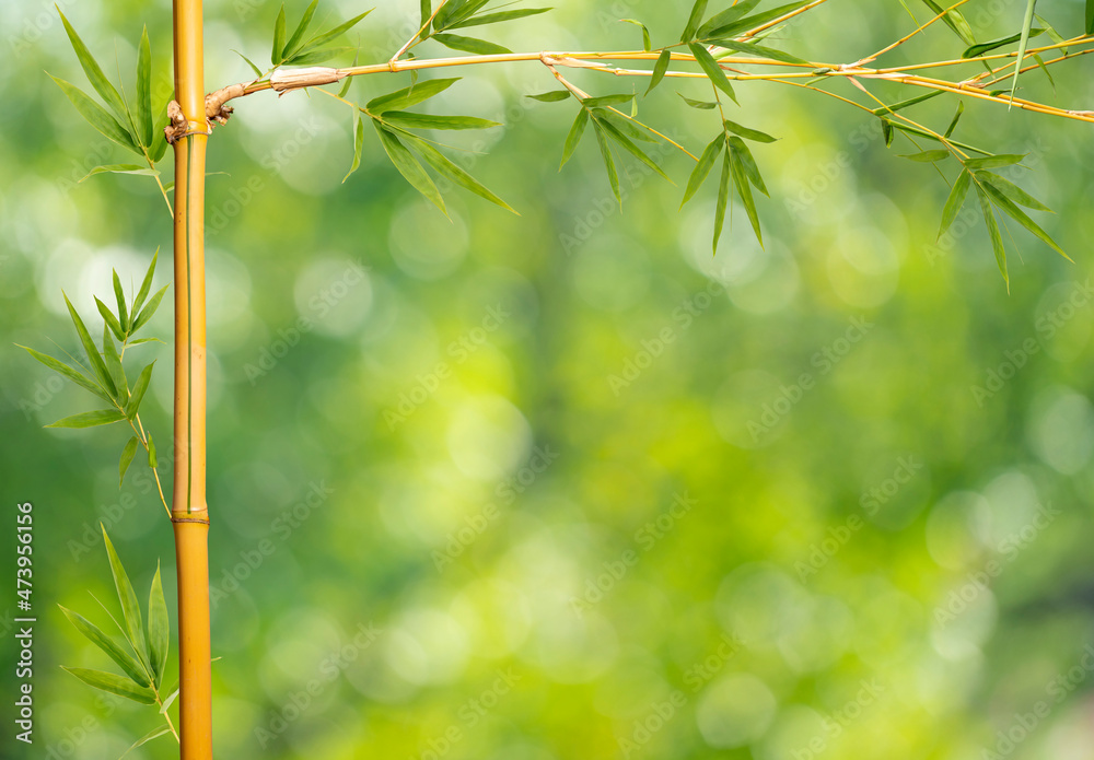 Bamboo branches With Bamboo leaves isolated over green natural garden Blur background, Bamboo branches With empty space Background, With clipping path,