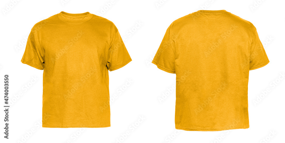 Blank T Shirt color gold on invisible mannequin template front and back view on white background