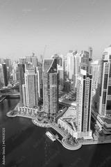 Dubai Marina and Harbour skyline architecture overview wealth luxury travel in United Arab Emirates portrait format