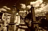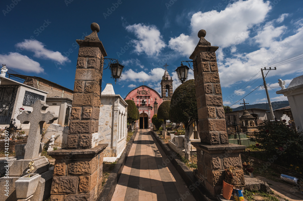 Old chapel with its classic pantheon with tombs, in the Magical Town of Tlalpujahua, Mcihoacan.