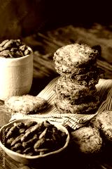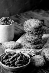 Sweet homemade snacks roasted almond nuts and shortbread cookies