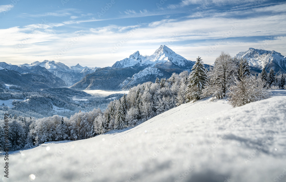 Idylic winter landscape, Watzmann, Berchtesgaden, Bavaria, Germany