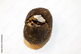 The avocado is spoiled. Rotten avocado fruit on white background.