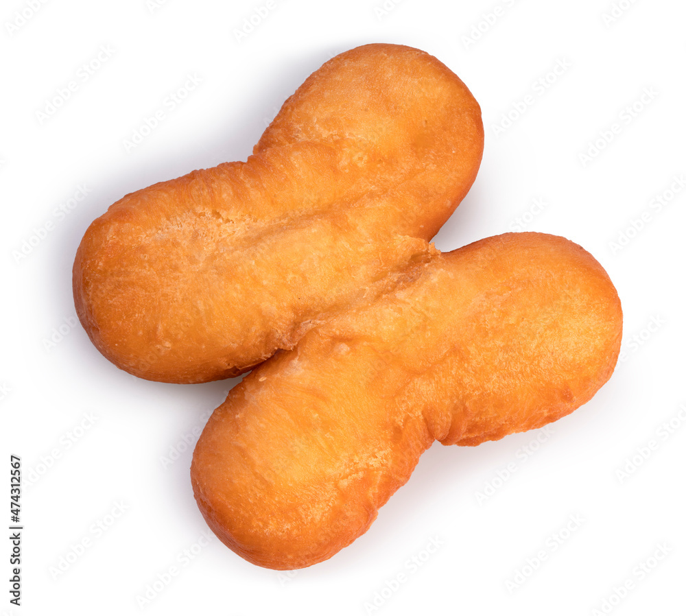 Youtiao Chinese Donut Stick isolated on white background, Golden brown deep fried breadsticks on White Background With clipping path.