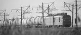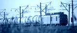Big passenger train at dawn, selective focus