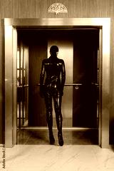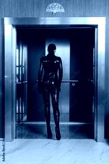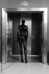 Hit woman. Girl in a latex suit with gun in hand..