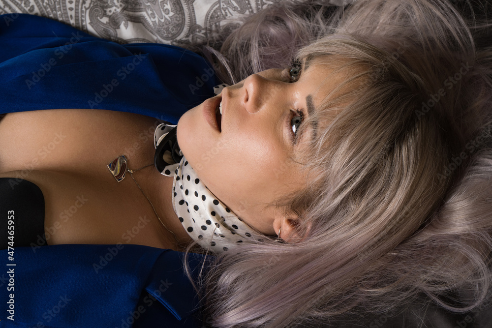 Noir film. Young beautiful flight attendant in uniform being strangled. Not contain any logos or trademark...