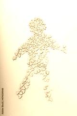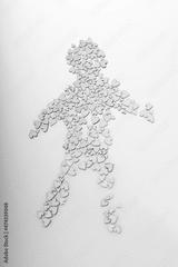 Retro style wooden hearts form a man shape
