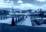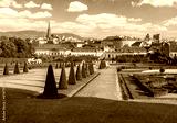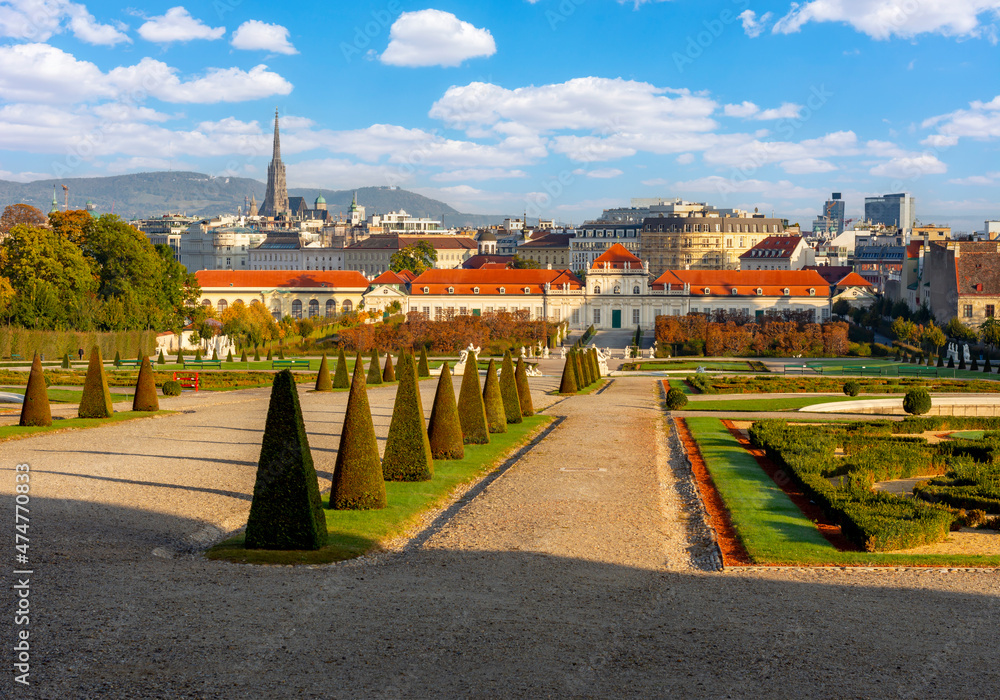 Vienna cityscape with Lower Belvedere palace and St. Stephen's cathedral, Austria