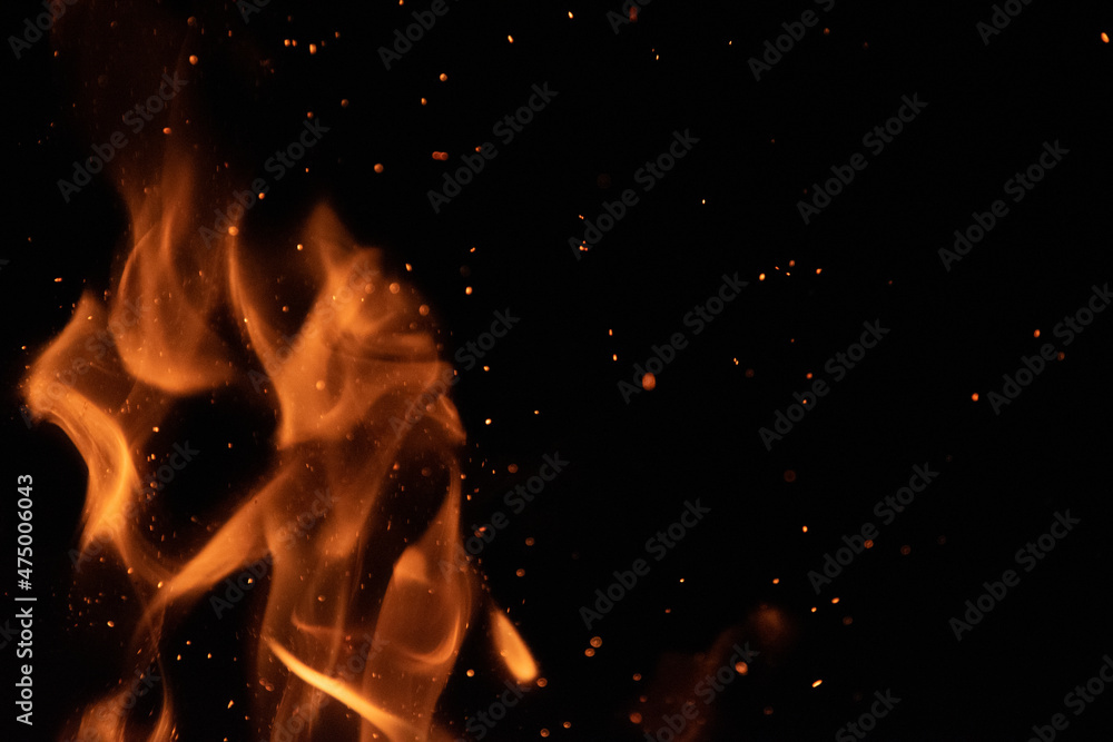Fire flames on black background. lights on a black background.
