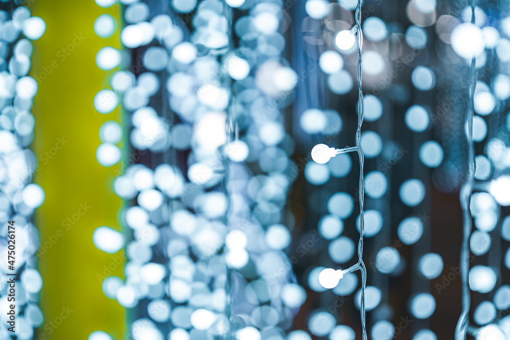Merry x-mas,White Colorful light Abstract circular bokeh of Christmas tree background Decoration During Christmas and New Year.
