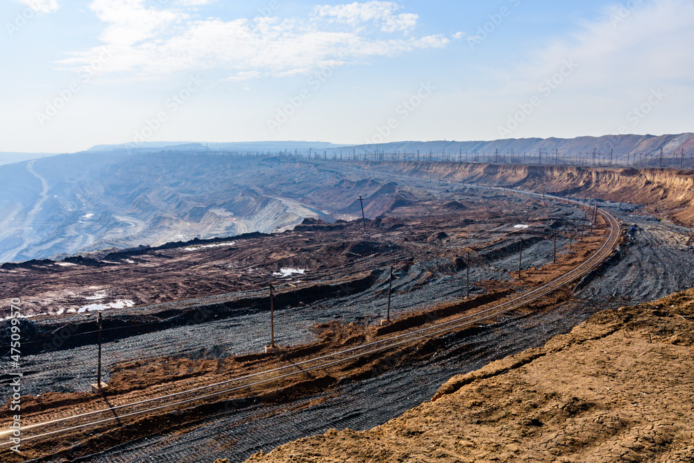 View on iron ore quarry in a dust haze