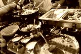 Cheff cooking fusion international cusine on street stall on international street food festival of Odprta kuhna, Open kitchen event, in Ljubljana, Slovenia