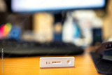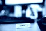 Covid-19 rapid antigen test. Rapid antibodies test kit with computer keyboard in office at background