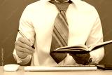 businessman is using a laptop computer, while a Businessman is working in his office. Freelancing, student life, e-learning, studying, web site, and technology are all topics that come up