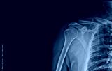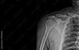 A photo of plain radiograph on dark background in hospital. The film use for diagnosis the illness of patient.Medical concept. A children with fracture clavicle.