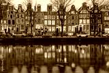 Evening Amsterdam canal Leidsegracht with typical dutch houses at gold hour, Holland, Netherlands.