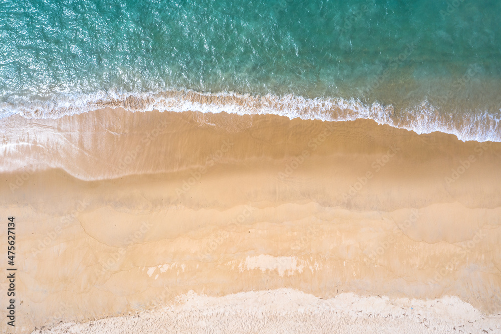 .aerial top view sea waves seamless loop on the white sand beach. .Wave after wave swept towards the shore. .green sea, white bubble waves,and clear sand landscape. Paradise beach.