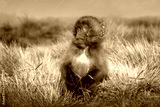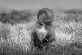 Close up of a baby Gelada monkey sitting in grass