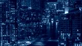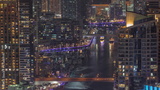 Close up view of Dubai Marina showing canal surrounded by skyscrapers along shoreline night timelapse. DUBAI, UAE