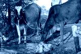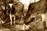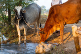 Cows drinking water from the pond