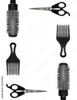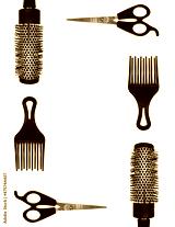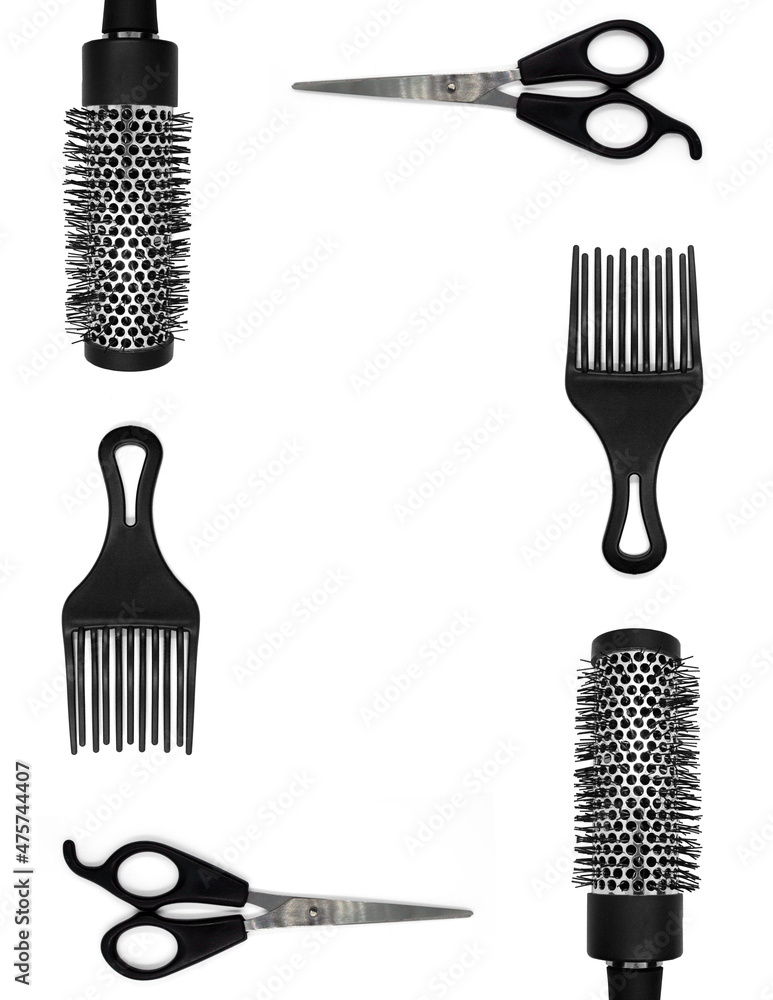 Hairdresser instruments (Scissors, combs) on white