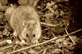 Close up of a brown rat looking at camera on forest floor