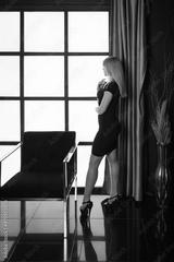 Beautiful young woman in retro style at vintage interior..