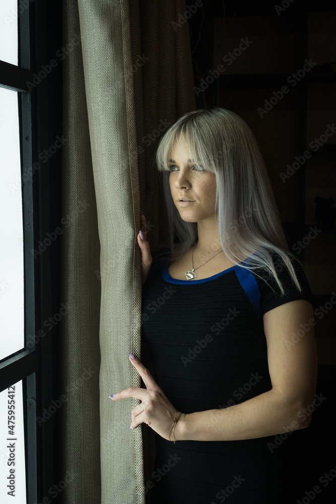 Beautiful young woman in retro style at vintage interior..