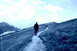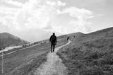 Beautiful view of a hiker in Seceda, Dolomitas, Italia