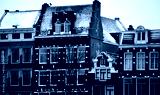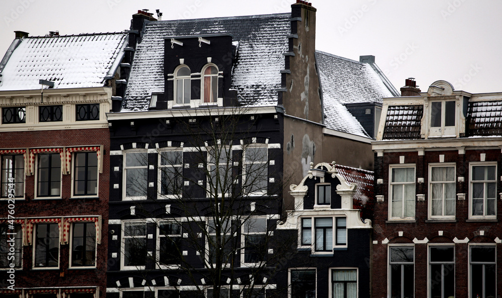Traditional Amsterdam architecture covered with snow