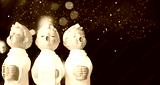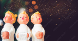 Christmas caroling or Carolers singing outside with snows.Angel group singing carol song on celebration of Christmas day in winter time.banner black background.Worship, Church, Catholic celebration.