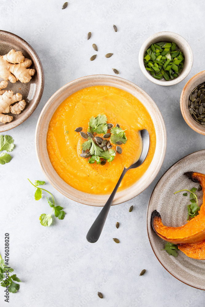Ginger and pumpkin vegetarian soup