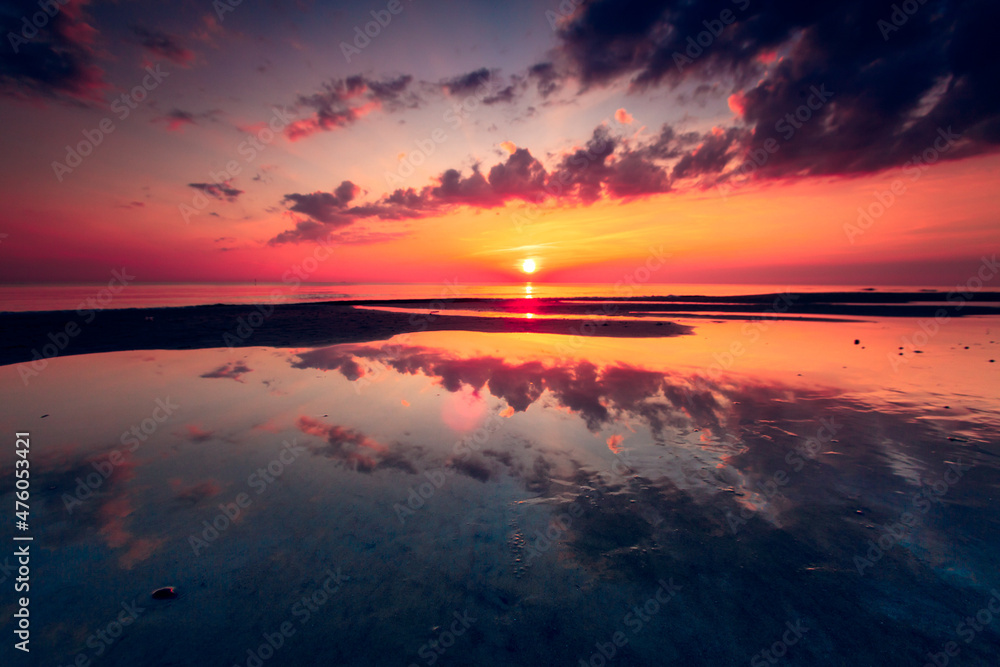 Scenic view of the Sunset at Baltic Sea in Palanga, Lithuania