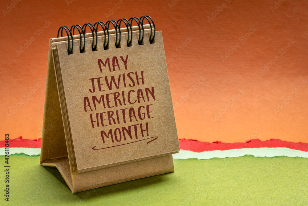 May American Jewish Heritage Month - handwriting in a small desktop calendar against abstract paper landscape, reminder of cultural event
