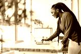 Woman working on laptop in her office
