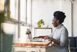 Woman working on laptop in her office