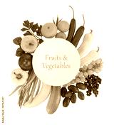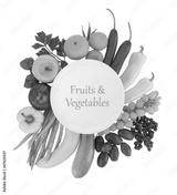 Empty plate with fruits and vegetables around it