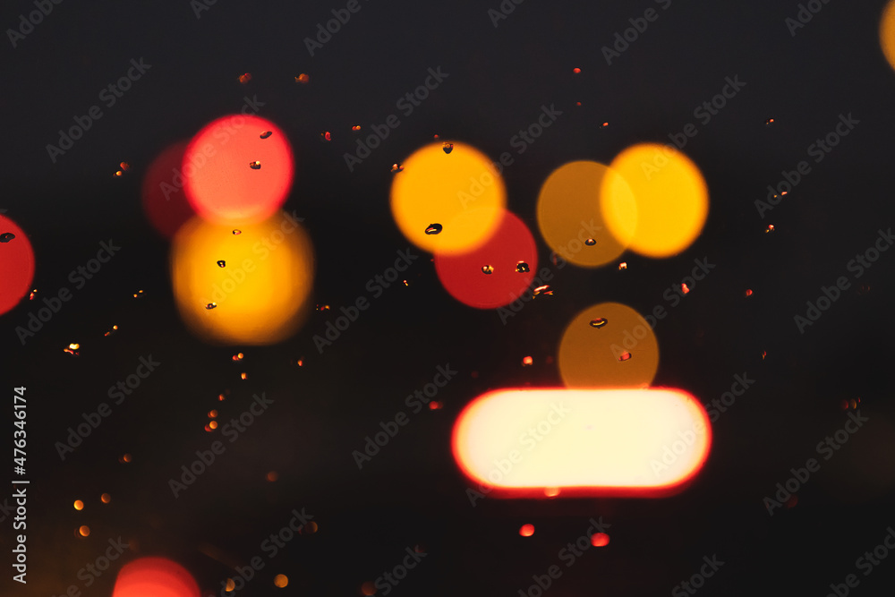 Multicolored cityscape evening background with blurred traffic light circles, bokeh. For background