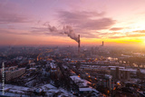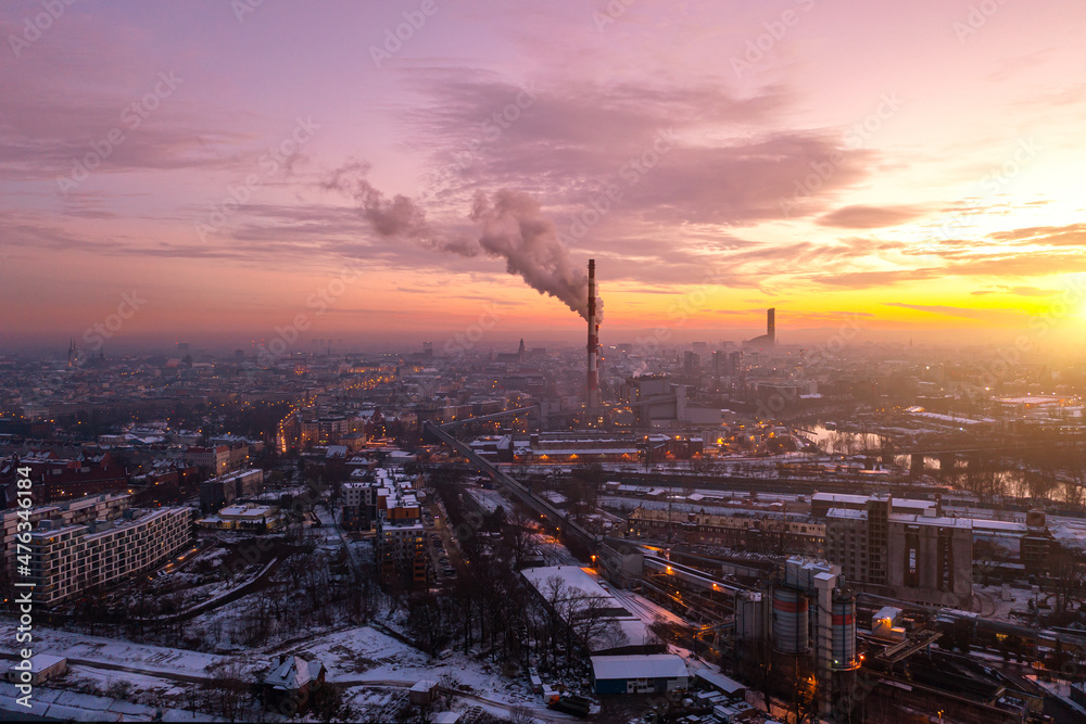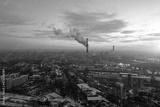 Industrial area of the city from a height, pollution of the city by the nearest factories and factories located within the city, the concept of environmental pollution
