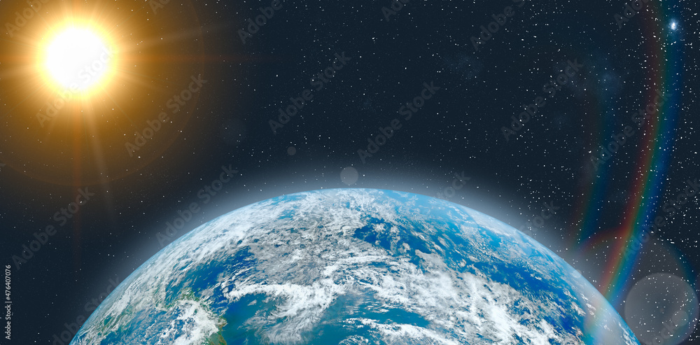 Our planet - Earth and the Sun star view from space of the planet with rays from sun. view from orbit. Elements of this image furnished by NASA