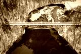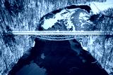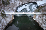 Winter scenery of the railway bridge in Rutki over Radunia river, Kashubia. Poland