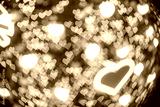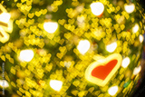 Merry x-mas,Yellow Colorful light Abstract heart bokeh of The light tunnel Christmas tree background Decoration During Christmas and Love New Year Festival illumination.