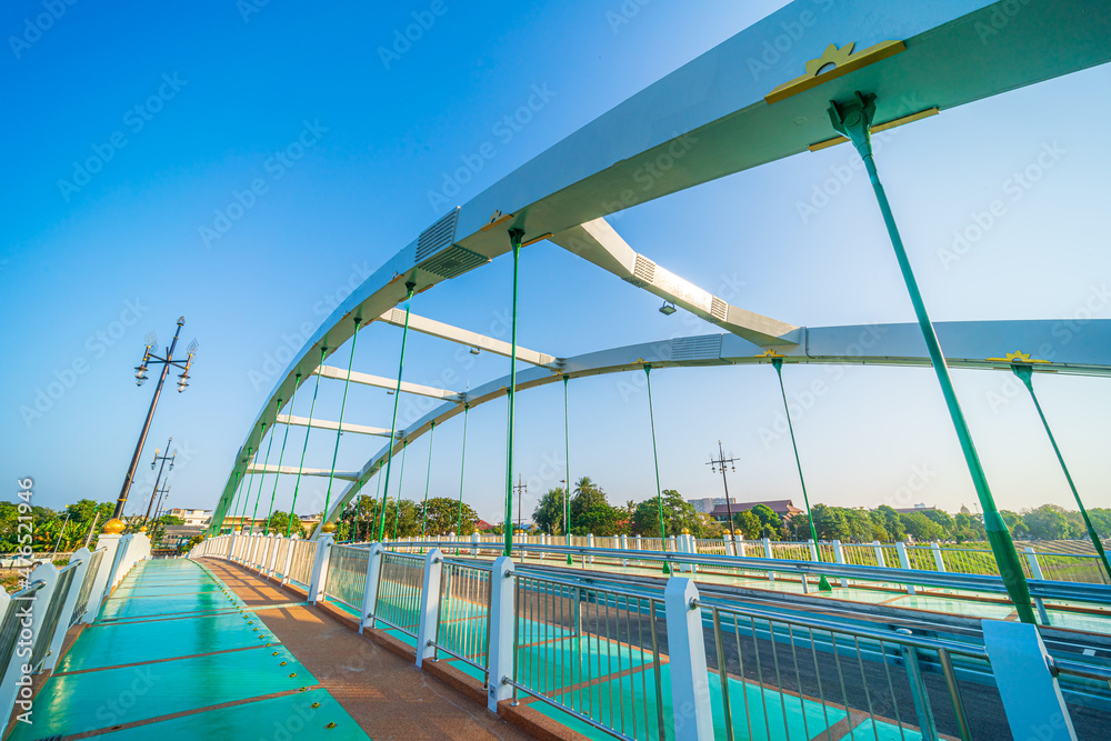 Chan Palace Bridge over the Nan River (Wat Phra Si Rattana Mahathat also - Chan Palace) blue sky background New Landmark It is a major tourist is Public places attraction Phitsanulok at daytime