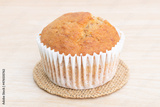 Close-up of homemade Banana cupcake isolated on wooden background. Front view composition.