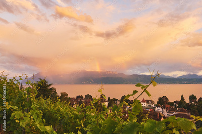 Beautiful sunset with rainbow over Alps, Haute-Savoie region, France, picture take in lausanne, Switzerland