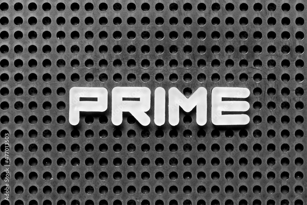 White alphabet letter in word prime on black pegboard background