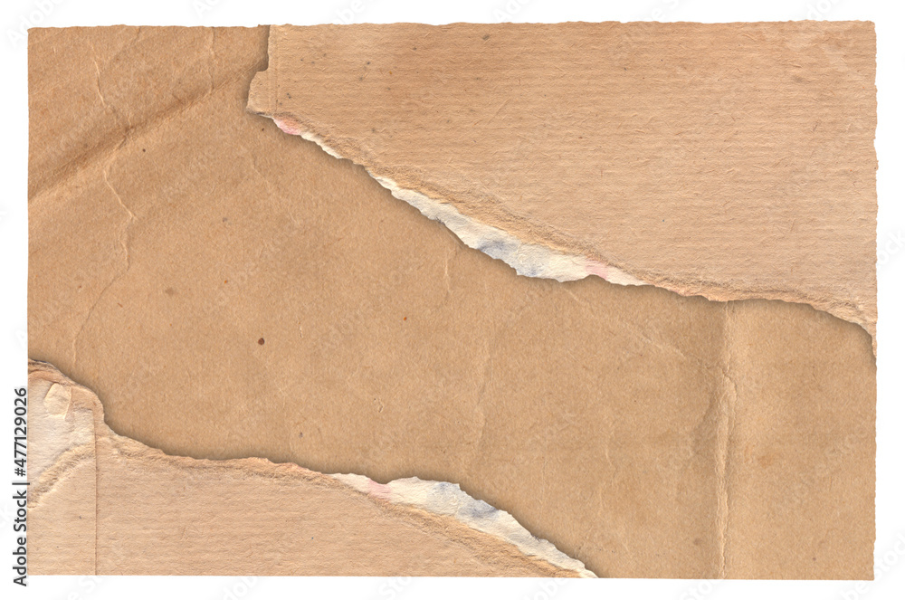 Old vintage texture retro paper with burned stains and scratches background isolated