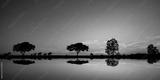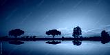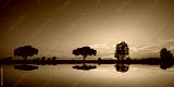 Amazing sunset and sunrise.Panorama silhouette tree in africa with sunset.Dark tree on open field dramatic sunrise.Safari theme.